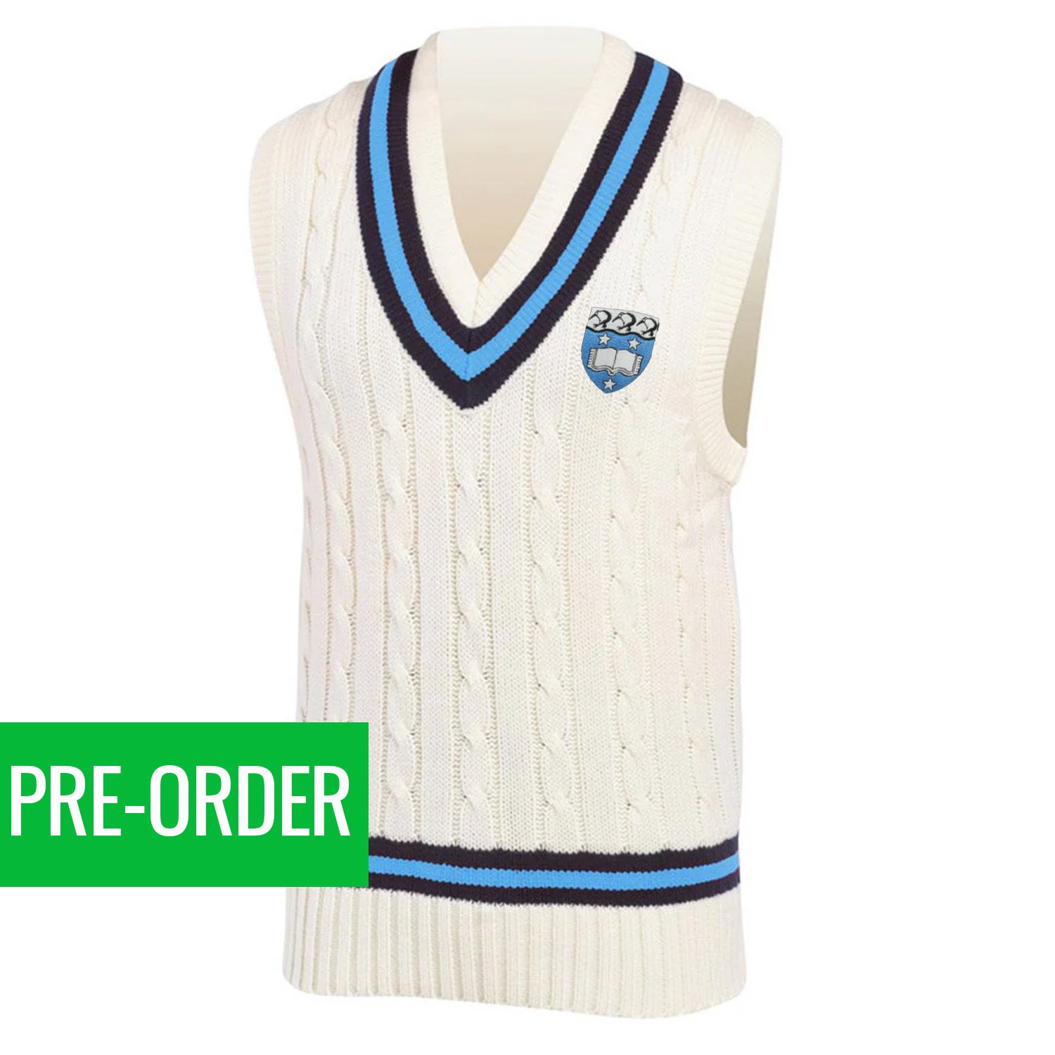 The Official Auckland University Cricket Club White Sleeveless Sweater.