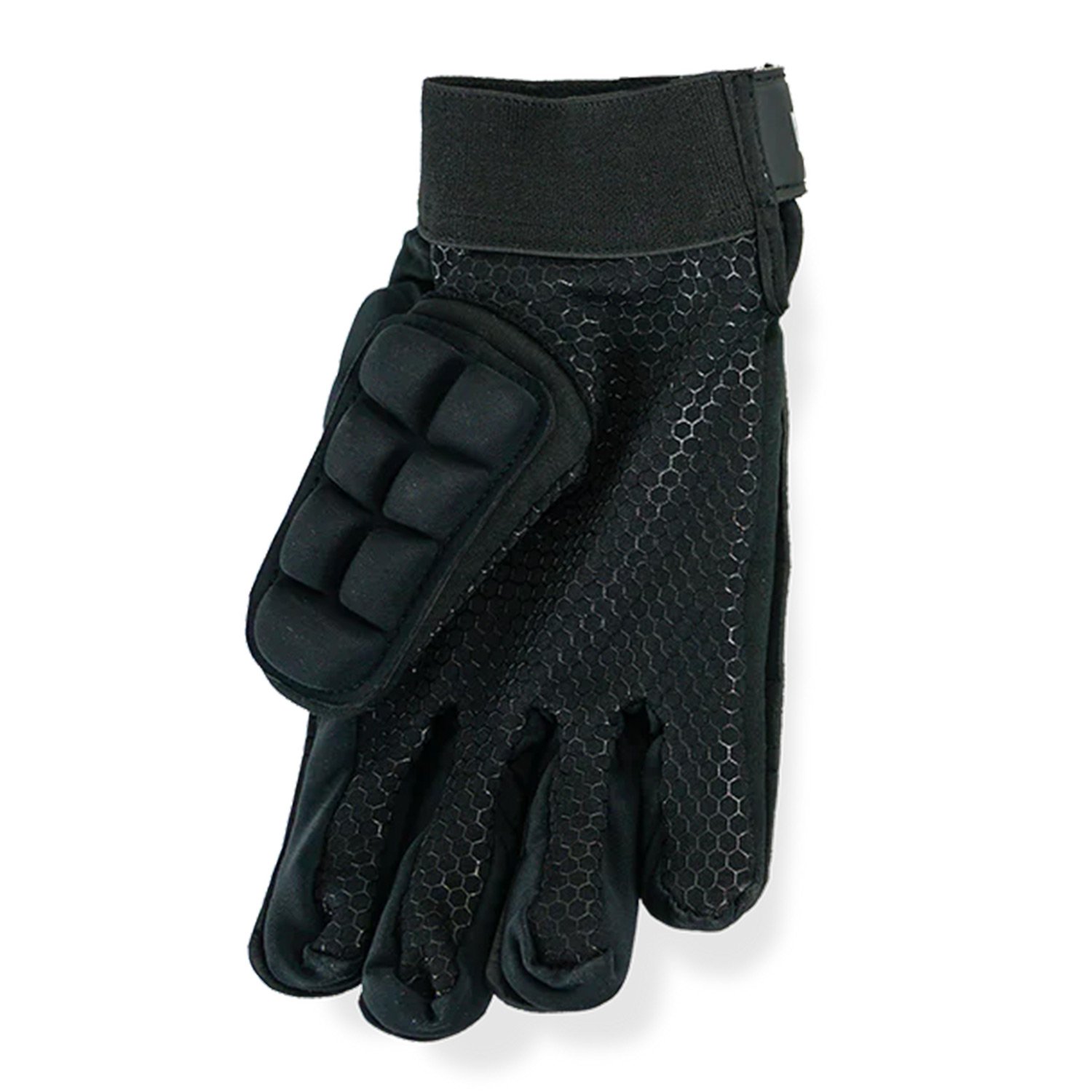 Its closed, covered palm enhances grip and durability, while the highly flexible construction makes it ideal for both indoor and outdoor hockey. An adjustable wristband ensures a secure, personalised fit during fast-paced play.