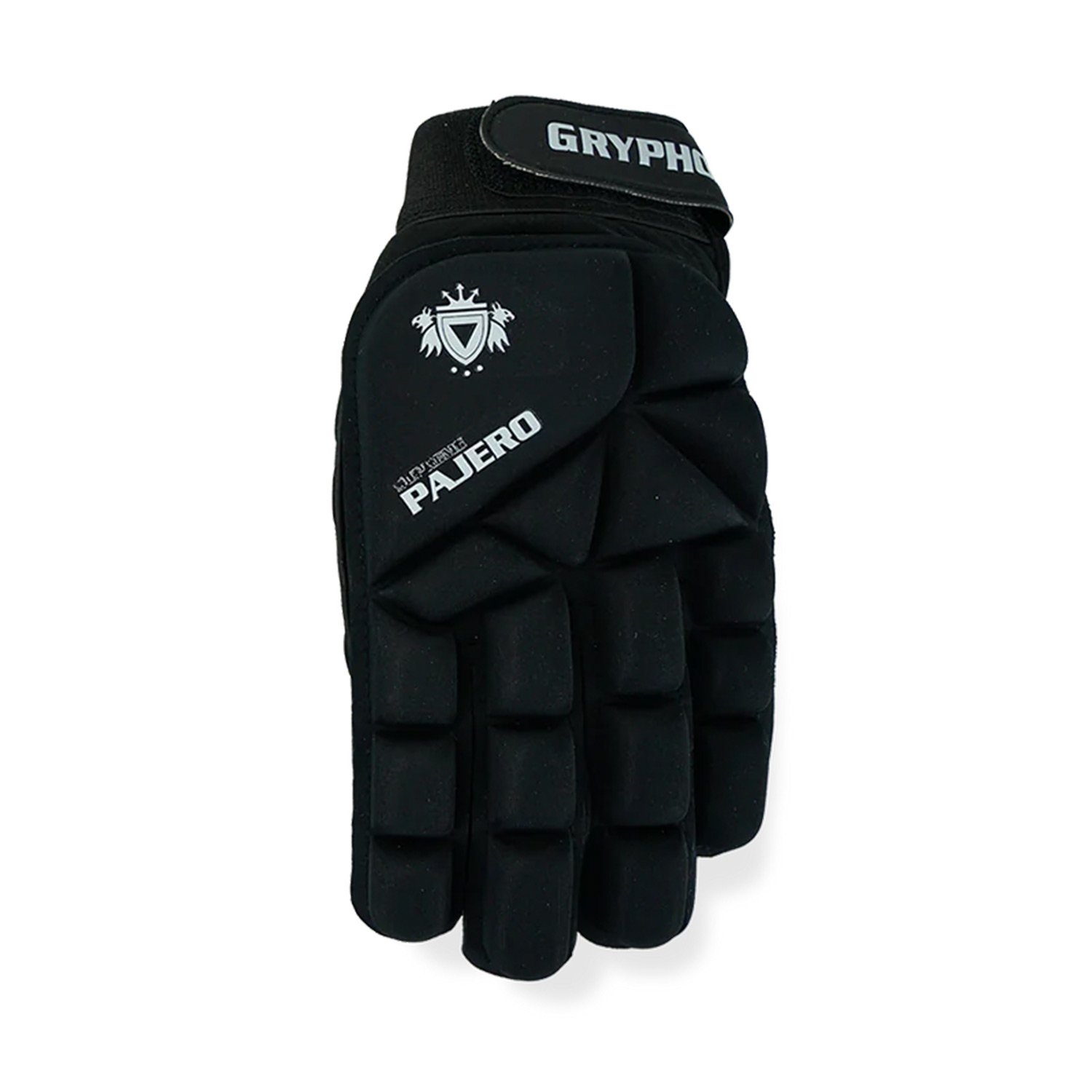 The Gryphon Pajero Supreme G5 field hockey glove delivers full-hand protection with flexible HD foam coverage and a secure covered-palm design — built for confident play indoors and out.