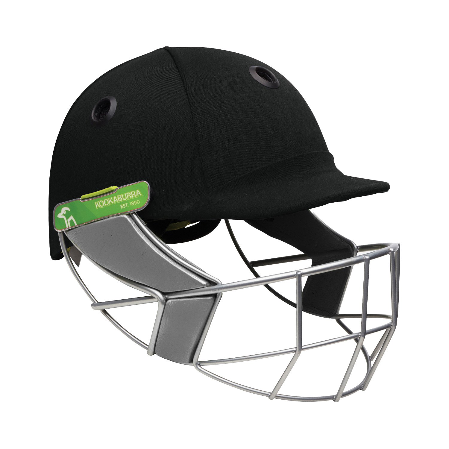 Kookaburra Pro 1200 Helmet with Neck Guard delivers lightweight ABS protection, steel faceguard, and a custom fit dial for safety and comfort at the crease.