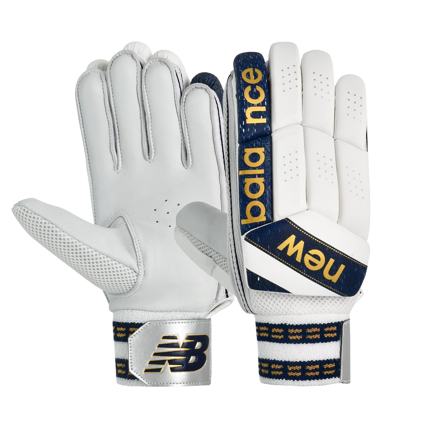 New Balance DC 500 Batting Gloves deliver reliable protection and comfort with PU finger rolls, sheep leather palms and ventilated gussets — ideal for club-level cricket.